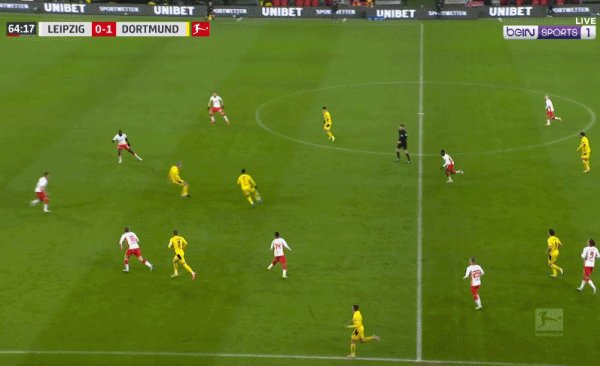55'多特右路攻势,哈兰德倒三角传球,罗伊斯脚后跟做球,桑乔后点推射破门,多特1-0客场领先!